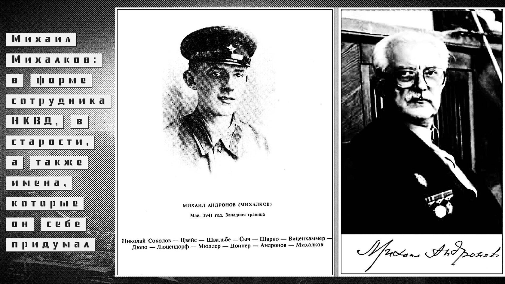 Судьба брата автора слов советского гимна Сергея Михалкова — Михаила — окутана мраком таинственности: сам Михаил Владимирович описывал свою жизнь в военные годы не иначе как героическую эпопею разведчика, в то время как советские органы власти трактовали всё иначе, усматривая в основном измену и сотрудничество с немцами. Михалков описал свою версию пережитого в мемуарах, но они настолько фантасмагоричны и гротескны, что озадачат любого читателя. Об этой загадочной теме мы и поговорим.