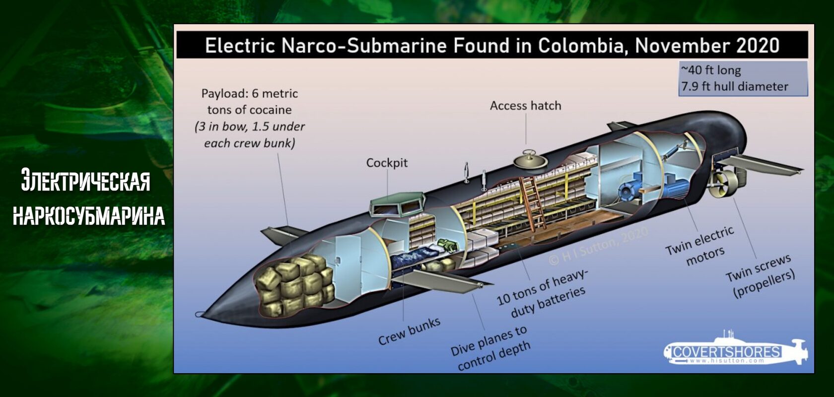 Тем не менее скрытность, как ключевое свойство подводной лодки, была по достоинству оценена не только военными по всему миру, но и наркокартелями. В то время как мощнейшие мировые ВПК соревнуются в характеристиках боевых подводных кораблей, картели в условиях трущоб, мангровых лесов и глубокой конспирации, зачастую из подручных материалов, вот уже больше двадцати лет выстраивают свой наркофлот, способный ежегодно тайно перебрасывать сотни тонн запрещённых веществ. И когда речь заходит о скрытности, то, ввиду своей специфики, наркосубмарины легко могут превосходить своих боевых собратьев. Включайте ритмы солнечной кумбии, сегодня мы отправляемся по следам подводного наркофлота.