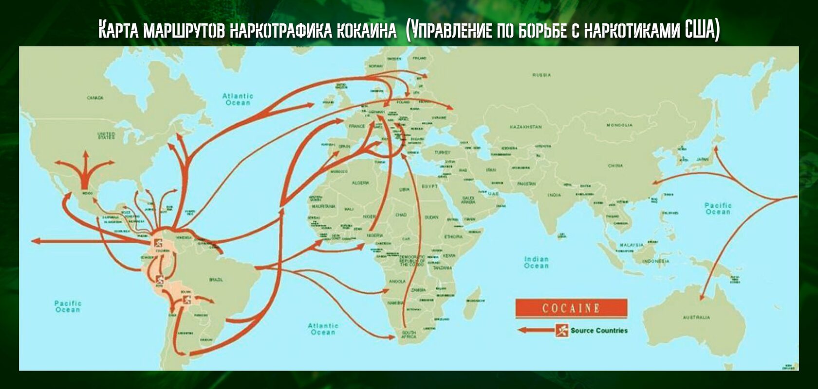 Это справедливо и для более позднего временного отрезка. Так, согласно отчёту Управления ООН по наркотикам и преступности, составленному на основании сообщений об изъятиях за период с 2013 по 2017 год, основные пункты отправления морского кокаина — Колумбия, Боливия и Перу. Оттуда большие объёмы переправляются в Бразилию, Мексику и Центральную Америку, а также в страны Карибского бассейна. Затем различными способами кокаин переправляется в страны Западной и Центральной Европы, Западной и Центральной Африки и Южной Азии. Общее представление о маршрутах распространения кокаина можно получить, взглянув на карту, предоставленную Управлением по борьбе с наркотиками США. На ней прекрасно видно, какой простор для использования наркосубмарин предоставляет существующая география распространения кокаина.
